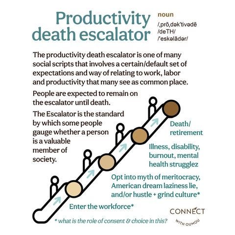 When we get sick from overwork or burnout, when our bodies begin snarling out of the cage it’s been put in, it is our Body begging us to resist this constant striving towards the mythical norm that has become so unrealistic and unhealthy to maintain that we are collectively working and surviving ourselves to death.